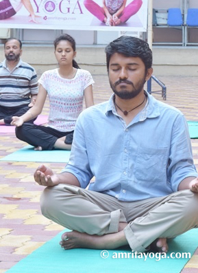 The concept of Amrita Corporate Yoga is to offer a simple tool as a preventative measure for you to use in your busy work life that helps energize the body, creates emotional and mental equilibrium, and improves bonding among colleagues. The result is happy, healthy, and inspired employees.